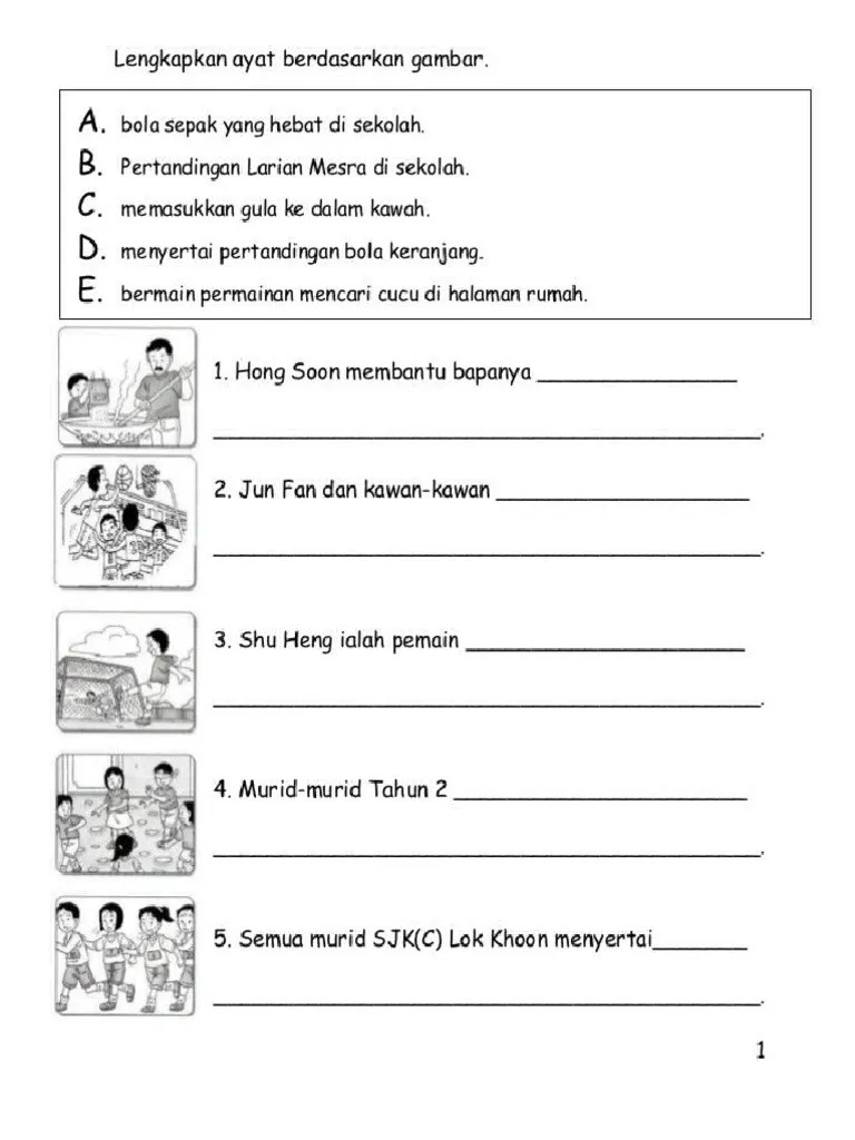 Latihan dan jawapan bina ayat berdasarkan gambar upsr bahasa melayu. Tahun 1 tahun 2 tahun 3 tahap 1 bahasa melayu bm bina ayat. Latihan membina ayat berdasarkan rangkai kata yang diberi. Latihan bina ayat bm tahun 1 dan 2 berdefinisi cina .